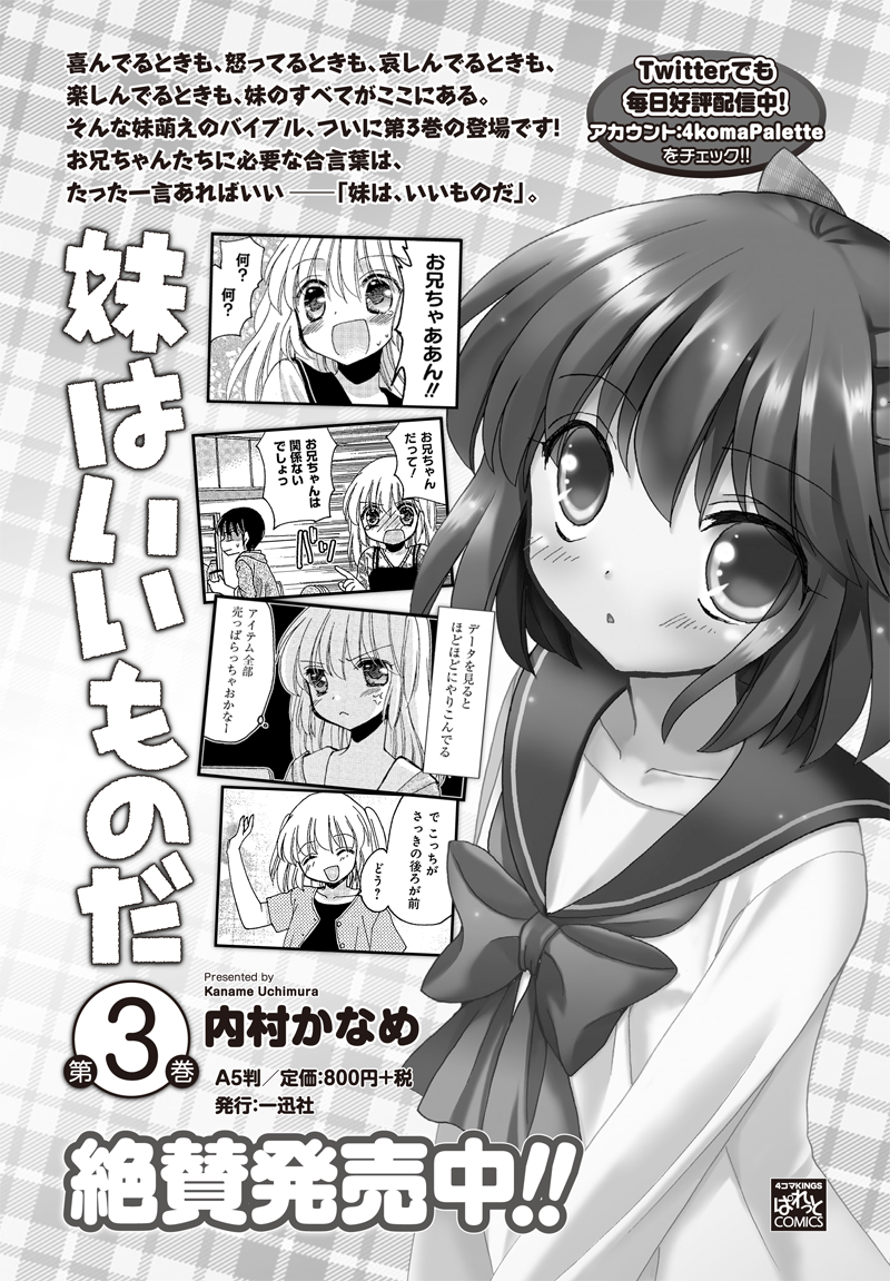 ぱれっと編集部 妹はいいものだ Twitterでも平日毎日更新 内村かなめ先生の 妹はいいものだ 第3巻まで大好評発売中 一人っ子では味わえないキモチ Http T Co Nauprs3ncj 妹はいいものだ Http T Co Nrlnhe35o9